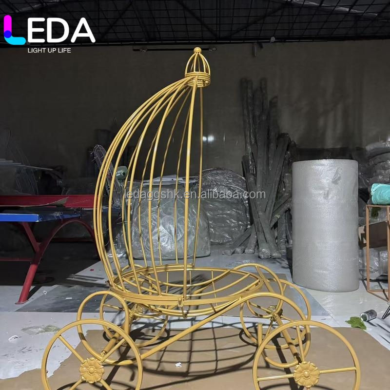 Carroza de Princesa de Metal Dorado Decorativa para Fiestas de Cumpleaños y Baby Shower, Personalizada por LEDA Factory, para la Entrada del Bebé