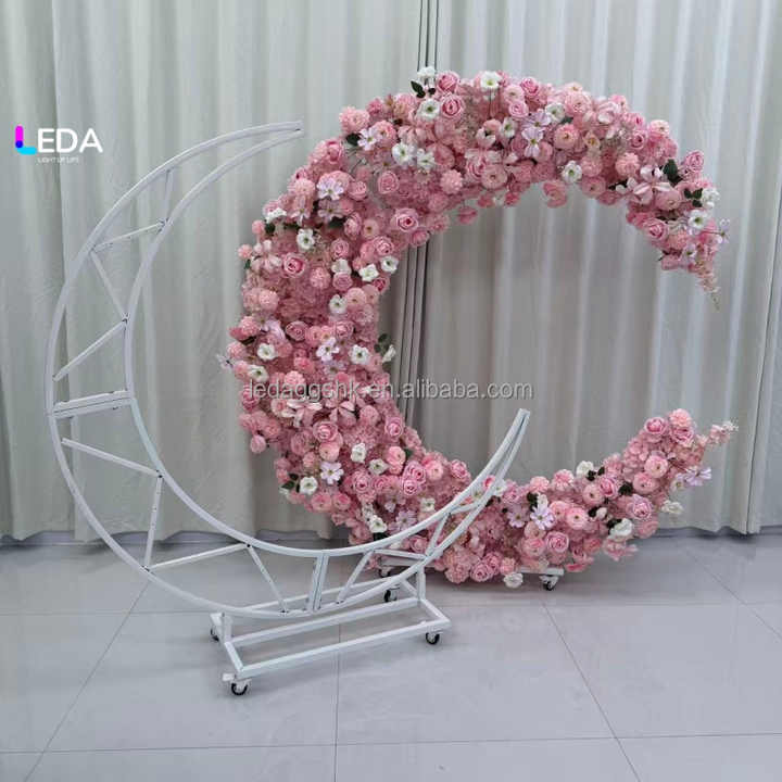 Arco de Flores Artificiales en Forma de Luna Rosa para Decoración de Bodas, Venta al por Mayor de Fábrica LEDA