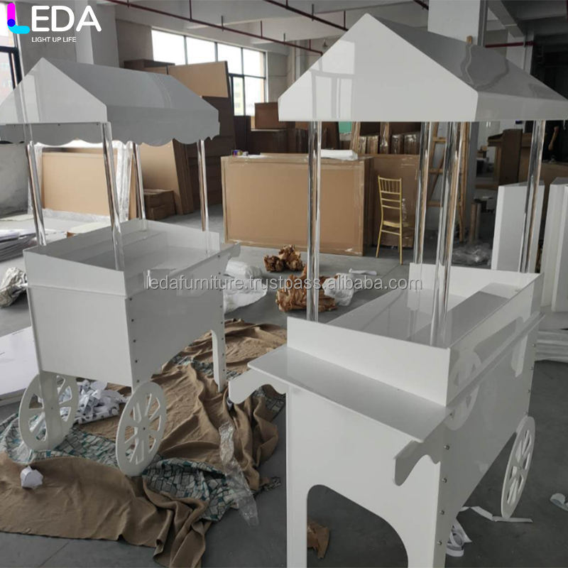 Carrito de dulces de postre acrílico totalmente plegable LEDA a la venta-carrito de bodas hecho a mano para el mercado carrito de mercado