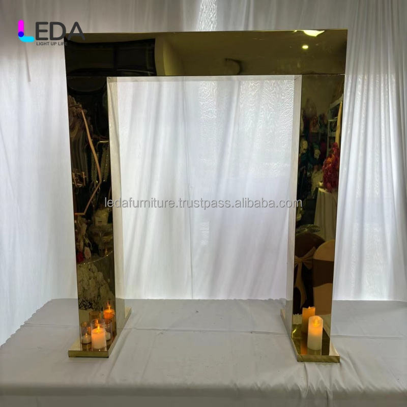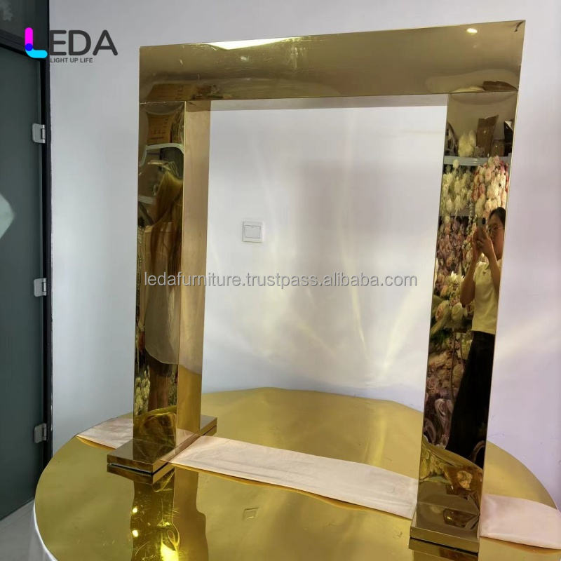 LEDA Gold Mirror Flower Stand Centros DE MESA DE BODA Soporte de exhibición floral para decoración de eventos