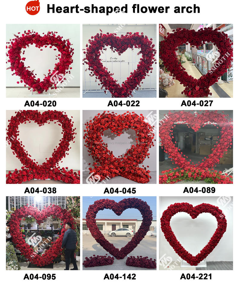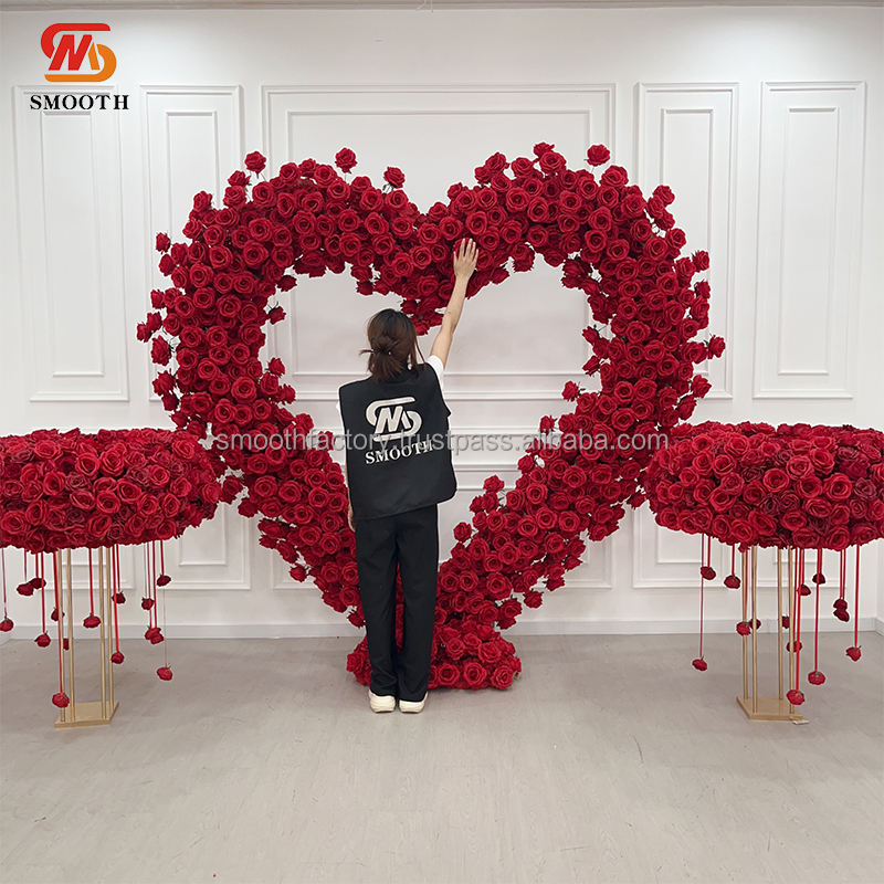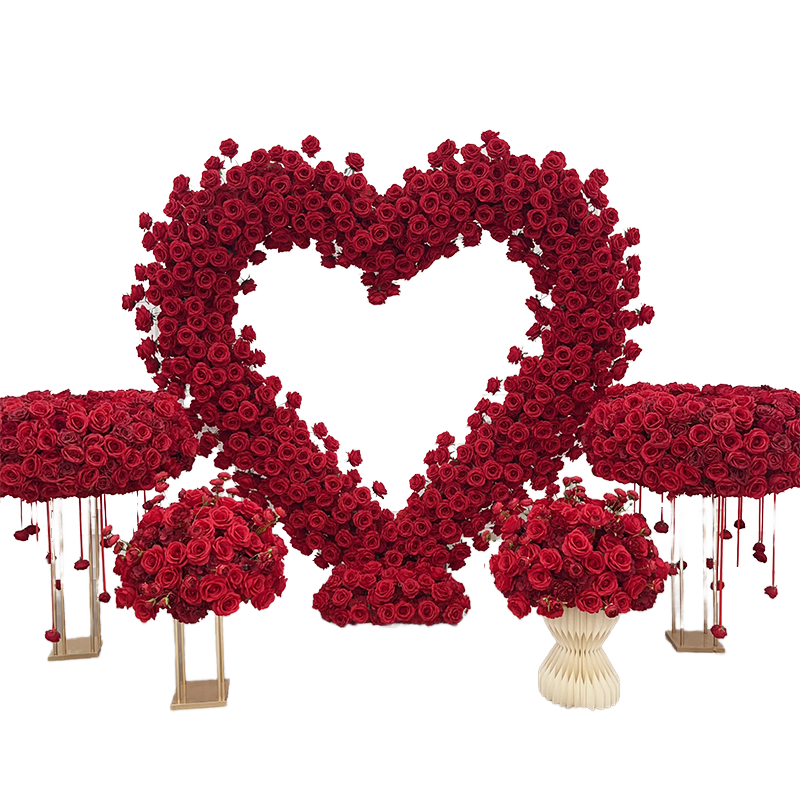 Nombre del producto:Arco de boda con flores artificiales de rosas rojas en forma de corazón