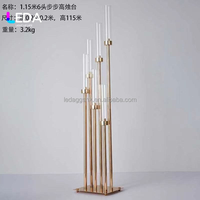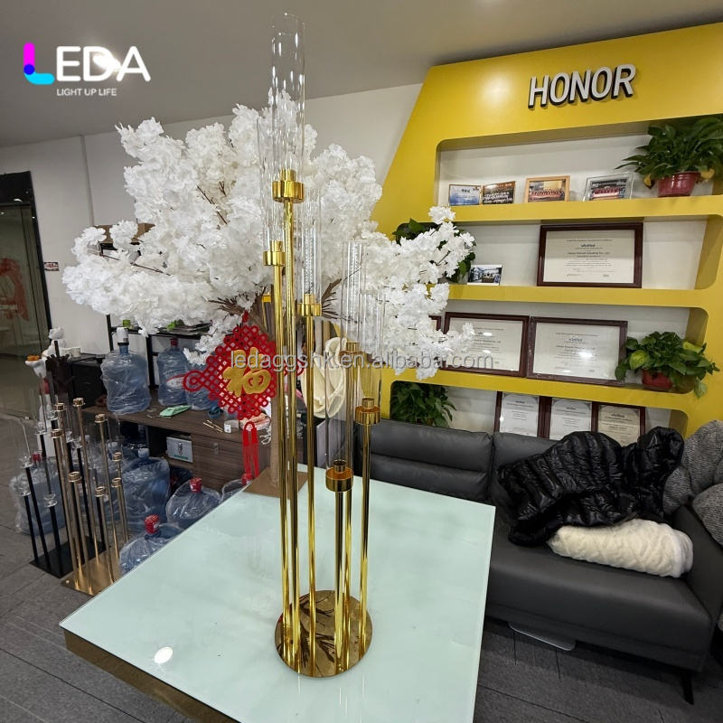 Candelabro LEDA de 6 Brazos en Metal Dorado, Centro de Mesa para Decoración de Bodas