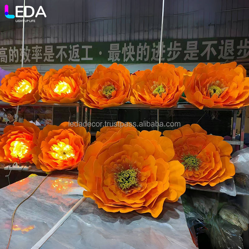 Decoraciones en forma de flor LED LEDA para el fondo del escenario del salón de bodas, con una Flor de Papel gigante roja.