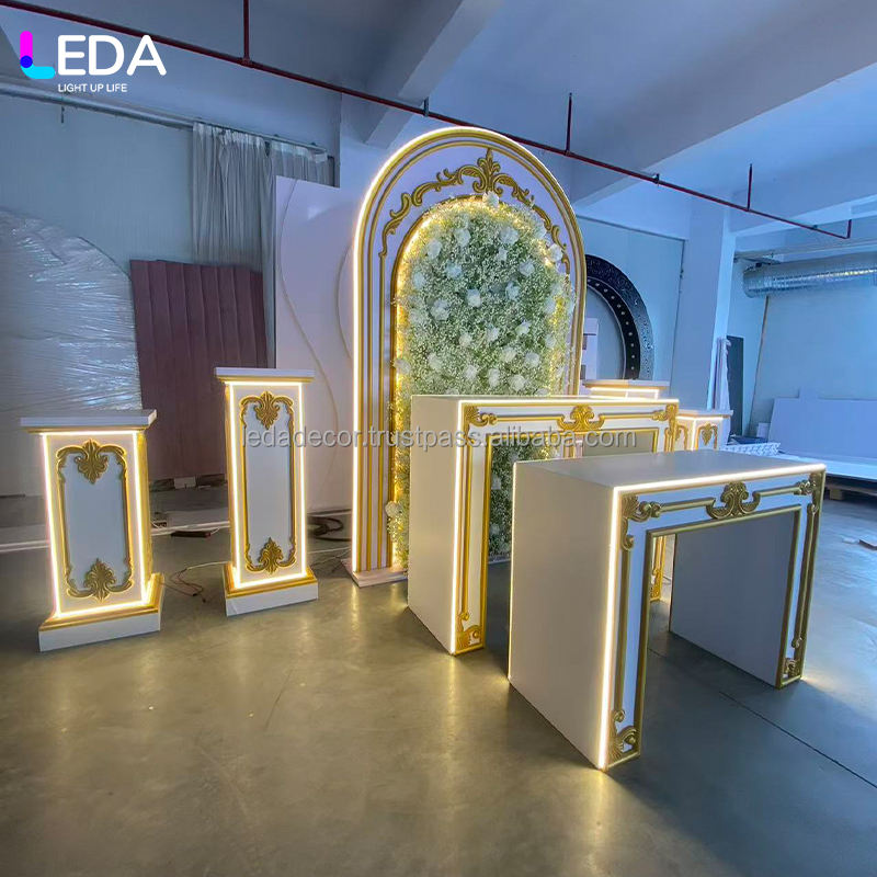 Arco Luminoso LEDA, Decoración de Pared Floral Removible con Flores de Gypsophila, Acrílico Artificial, Decoración de Fiesta, Fondo con Luz Cálida LED