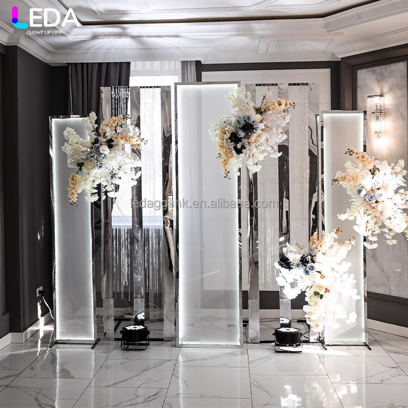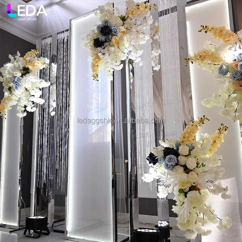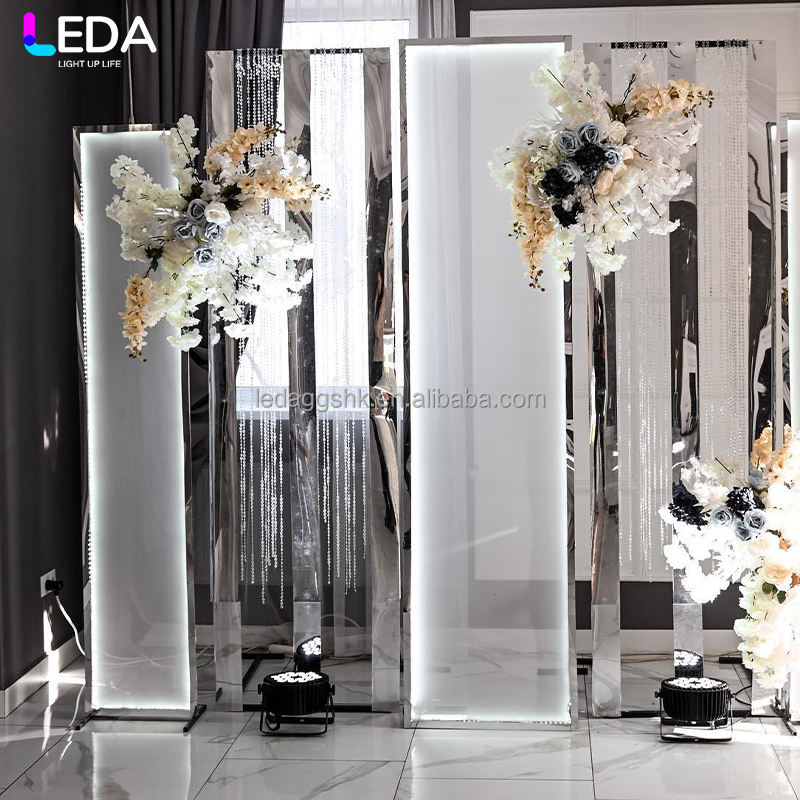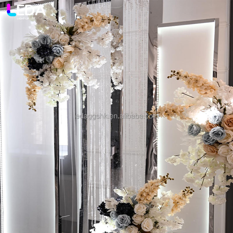 Arco de metal plateado para decoración de bodas con diseño moderno LEDA, telón de fondo de hierro para bodas.