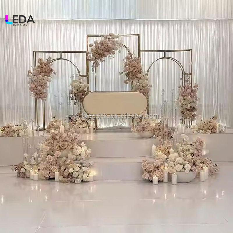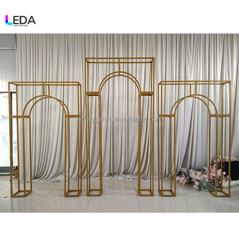 LEDA Moderno Soporte de Fondo Desmontable Dorado para Decoración de Bodas con Rayas Verticales para Arco de Escenario