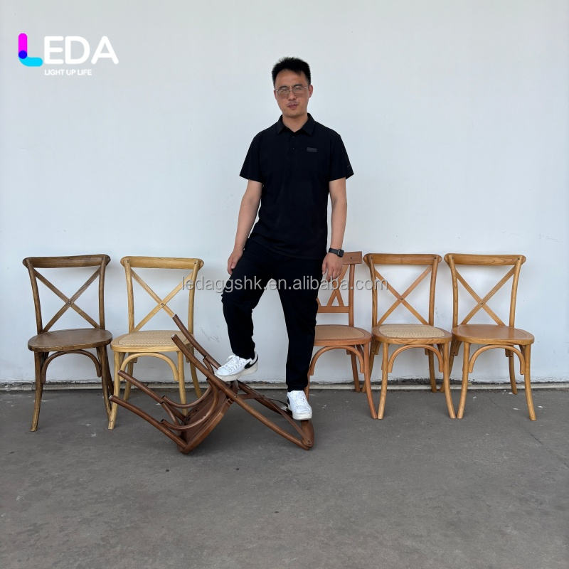 Silla de Madera Apilable Moderna LEDA con Respaldo Cruzado, Silla de Comedor para Hotel, Bodas, Banquetes y Eventos