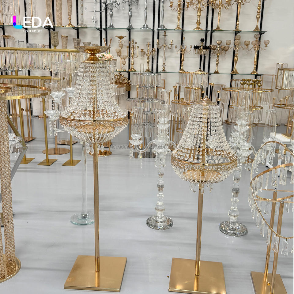 LEDA - Centro de Mesa Moderno para Decoración de Bodas, Soporte de Luz con Control Remoto, Acrílico Transparente, Portavelas de Metal Dorado