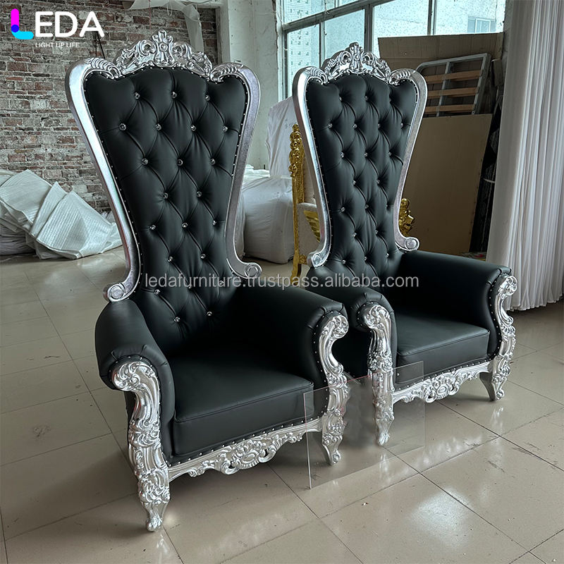 LEDA Asientos modernos de lujo tamaño king para boda, negro para novios, sillas para restaurante y hotel.