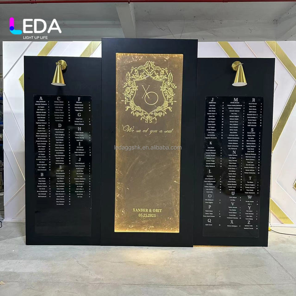 Letrero de Bienvenida LEDA con Nombre Personalizado, Soporte de Acrílico para Planos de Asientos, Decoración para Eventos de Boda