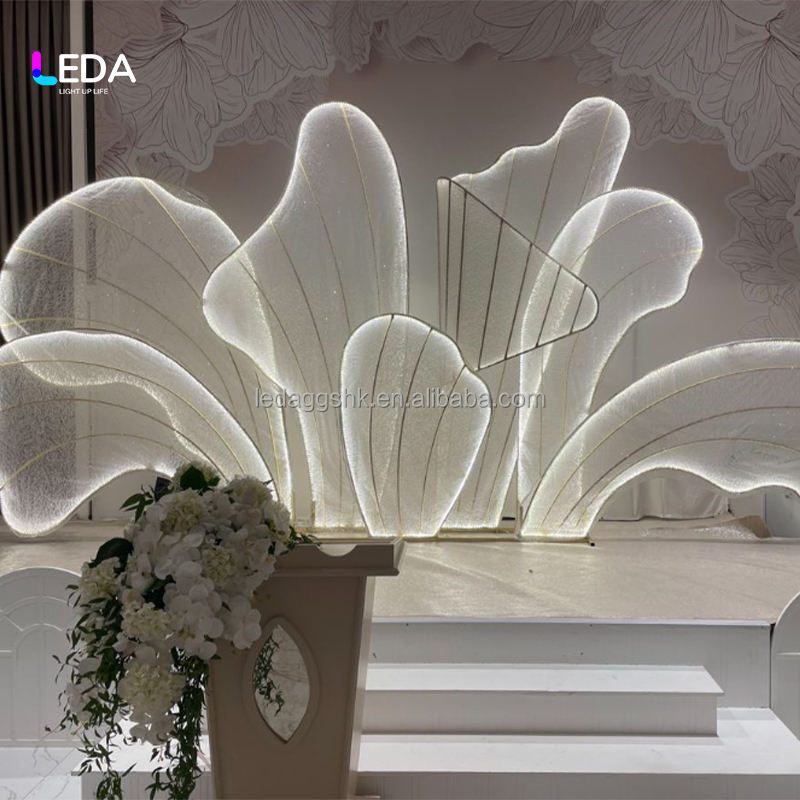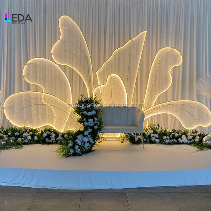 Fondo de escenario LEDA de nuevo diseño con grandes pétalos dorados para bodas en jardín