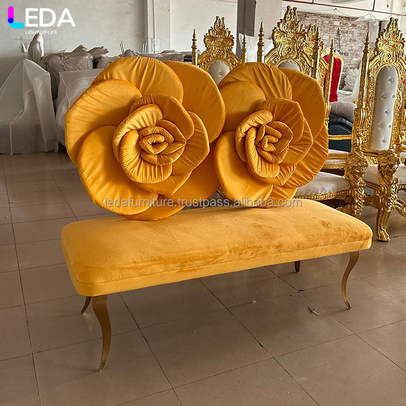 Sofá LEDA de una plaza, moderno, de terciopelo, con diseño de rosa amarilla, para bodas, hoteles y apartamentos.