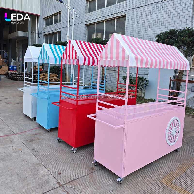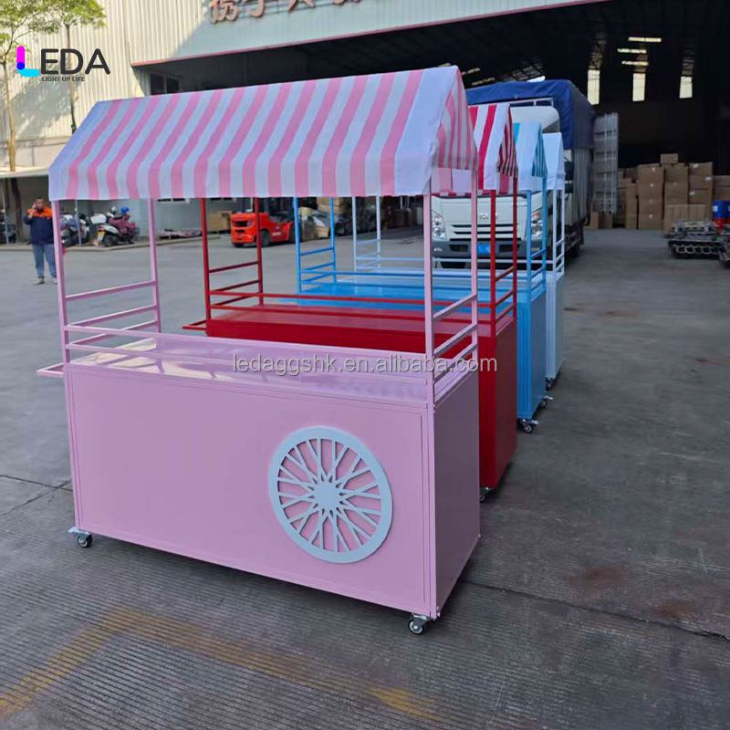 Carrito de Decoración para Bodas al Aire Libre LEDA, Carrito para Exhibición de Flores, Carrito de Algodón de Azúcar, Carrito Negro para Dulces