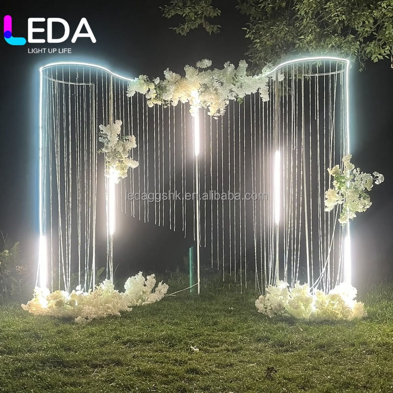 Decoración LEDA para bodas al aire libre, soporte de luz LED con forma de S y cristales colgantes para decoración de bodas
