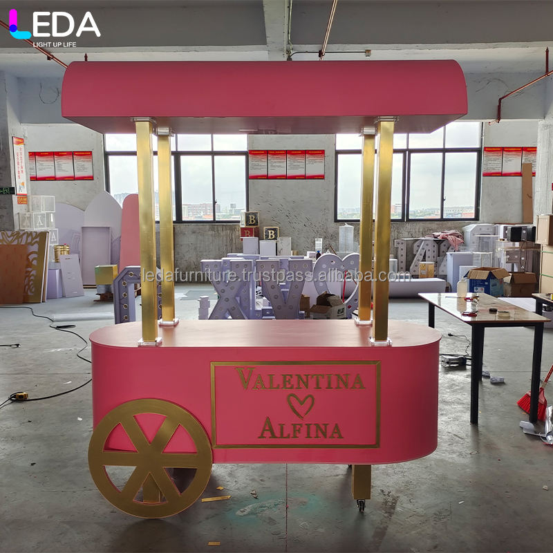 Vehículo de fondo para eventos de fiesta LEDA: carrito de dulces de boda. Decoración de fiesta: carrito de caramelos acrílicos con ruedas.