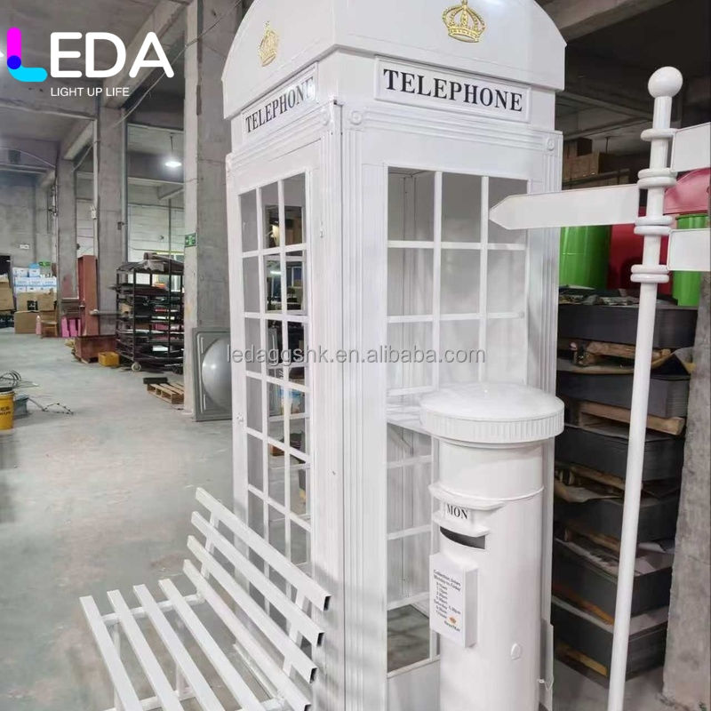 Cabina Telefónica Blanca con Decoración Floral de Alta Calidad para Bodas al Aire Libre, Artículos para Fiestas