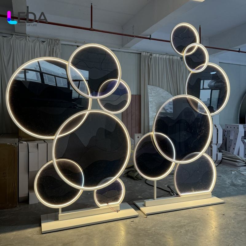 Soporte de fondo de círculo negro único LEDA, Fondo de anillo redondo LED acrílico, resistente para fiesta de boda