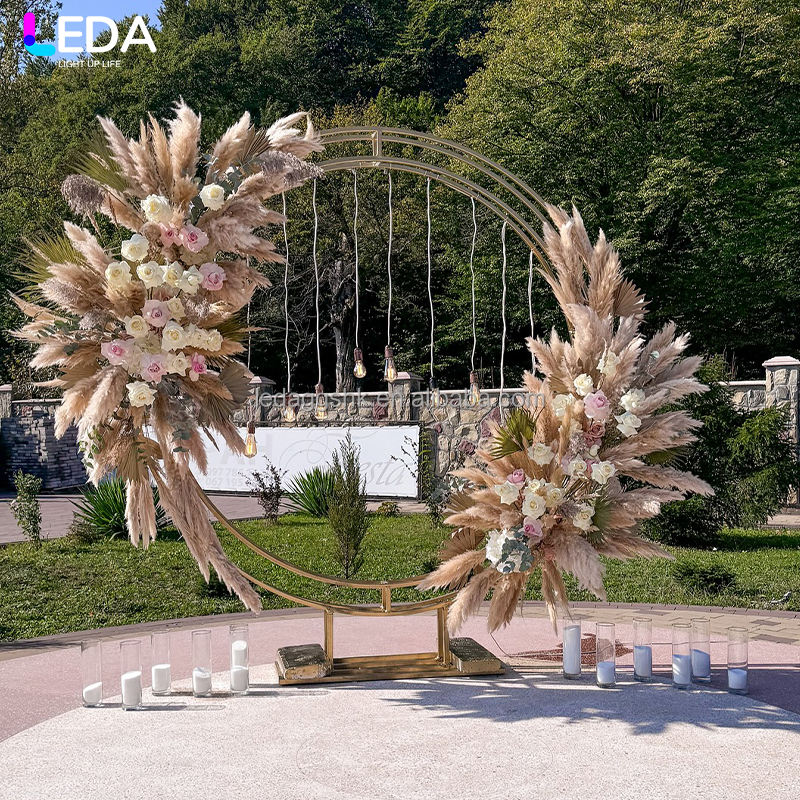 Decoración de Boda LEDA, Soporte de Metal Dorado Personalizado con Rejilla Artificial para Fondo de Boda