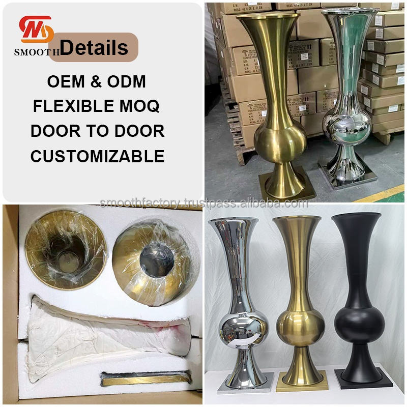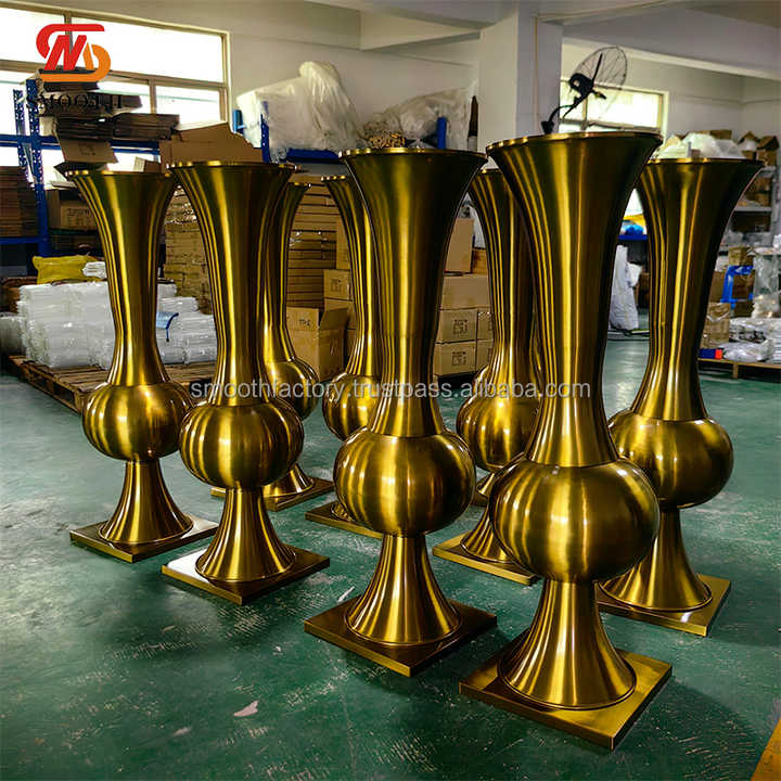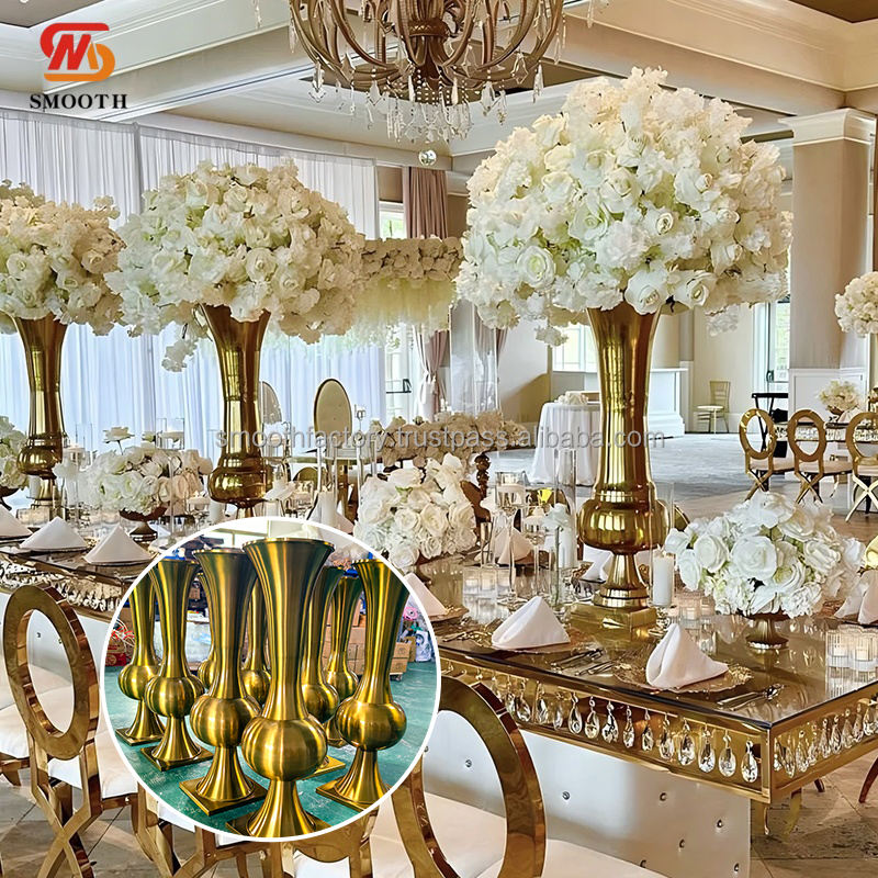 Centro de Mesa Decorativo para Bodas LEDA, Soporte de Flores Metálico Dorado con Forma de Jarrón, Elegante