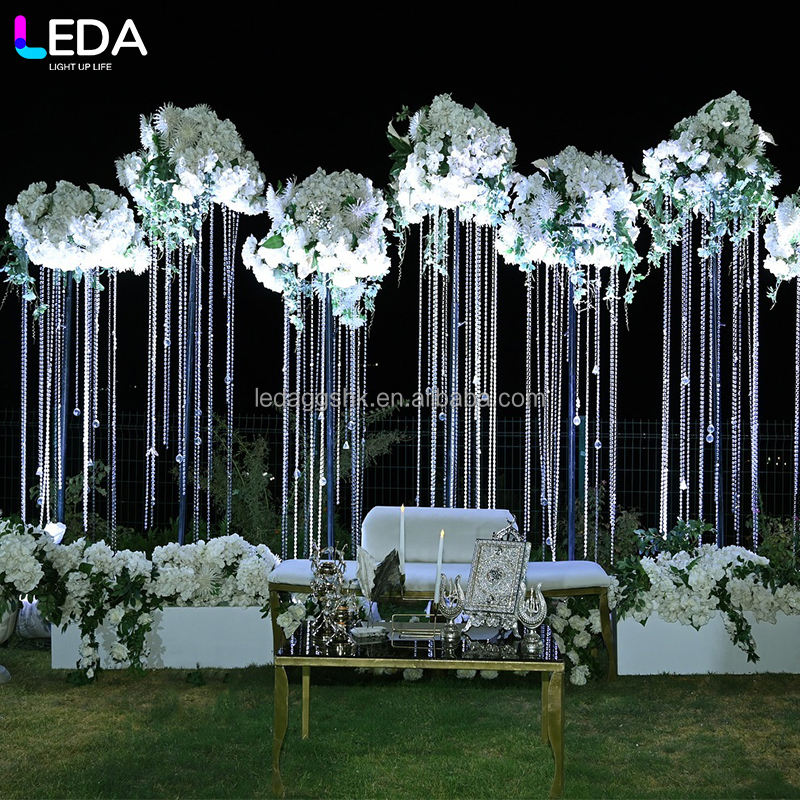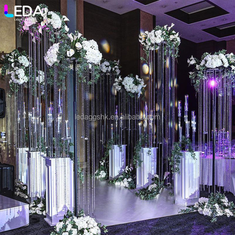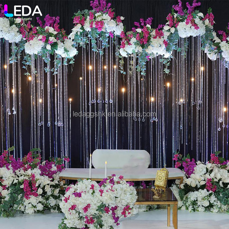 Centro de mesa LEDA para bodas, cortina de cristal con cuentas para decoración de bodas y banquetes