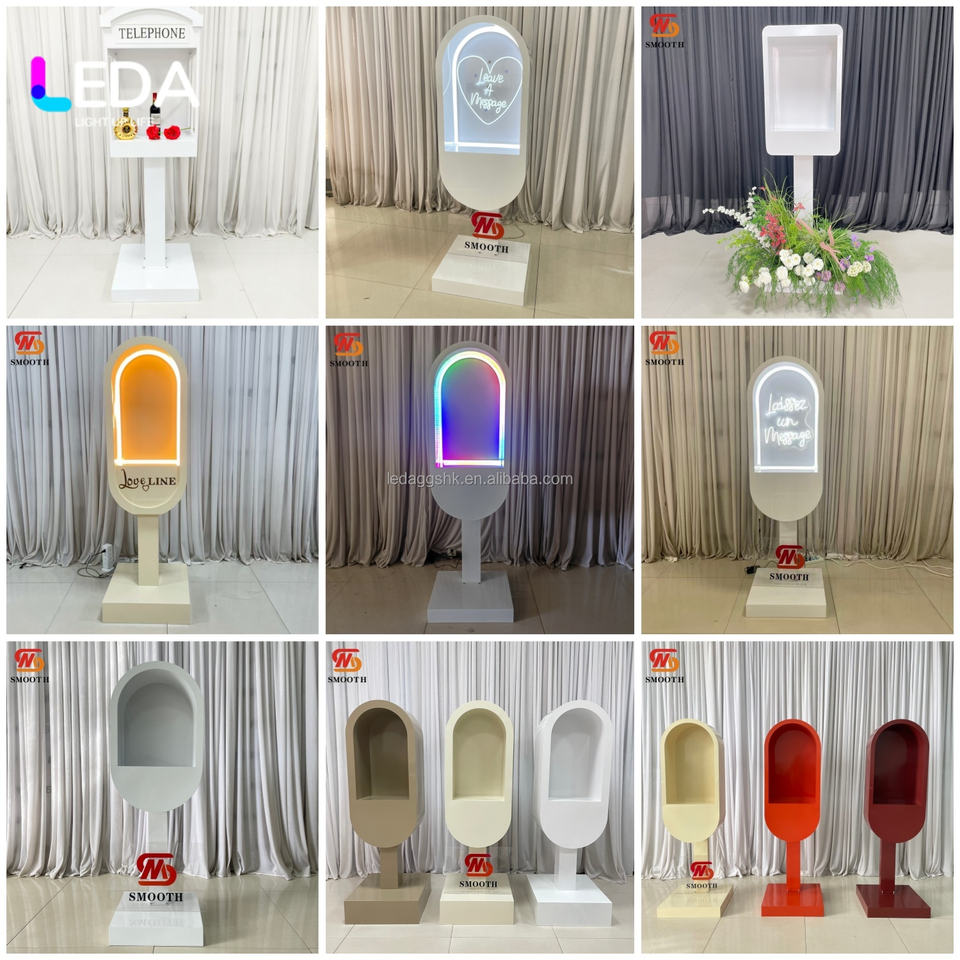 Cabina Telefónica Moderna Blanca LEDA con Luz LED, Adorno Floral, Caja de Mensajes, Decoración para Bodas, Recepciones, Fiestas y Eventos, Metal