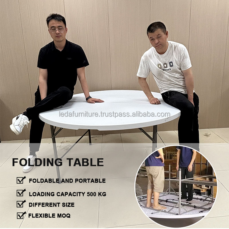 LEDA Venta al por mayor Mesa redonda plegable de 1,8 m para eventos al aire libre, fiestas de boda, mesas plegables blancas portátiles