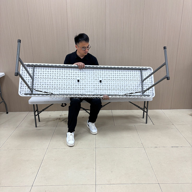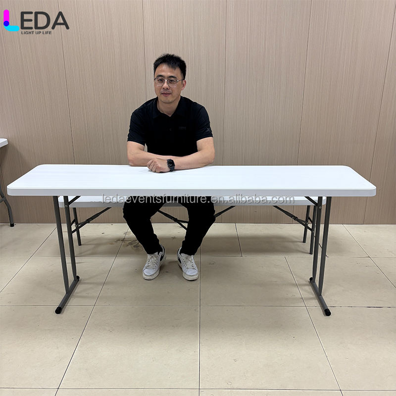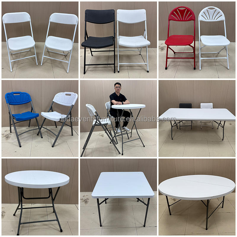 LEDA, venta al por mayor, precio barato, alta calidad, jardín, boda, evento, mesa blanca, resina, mesa plegable al aire libre y silla para eventos