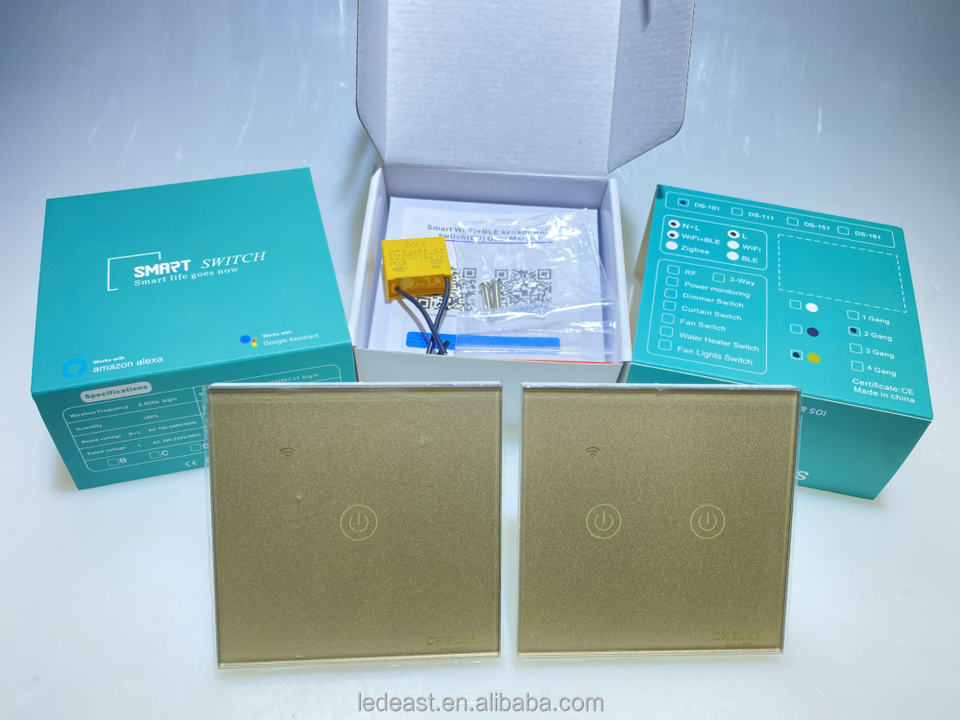 LEDEAST Interruptor de luz táctil inteligente Wifi 2 Gang tipo UE, tipo 2