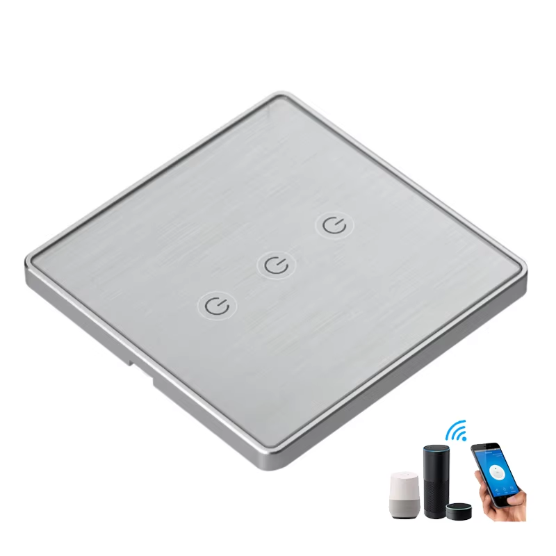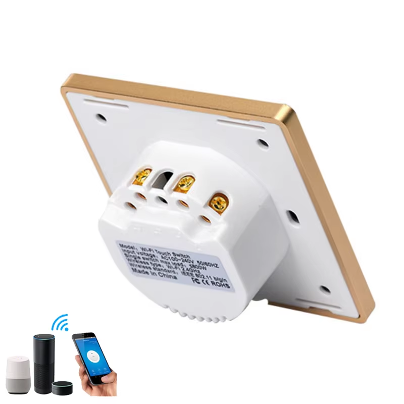 LEDEAST Precio de fábrica WS01 Cable en vivo y neutro Requerido Marco de metal de aluminio Interruptor de luz inteligente controlado por Wifi dorado y plateado