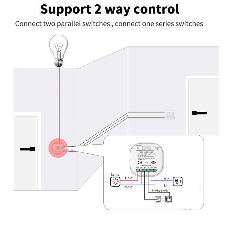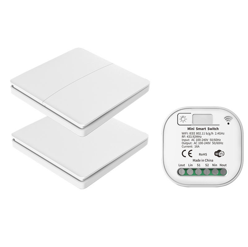 LEDEAST-interruptor inteligente QX302 Tuya de autogeneración, sin necesidad de instalarlo con cables, 2 entradas, impermeable, Wifi, interruptor RF433