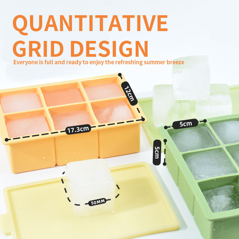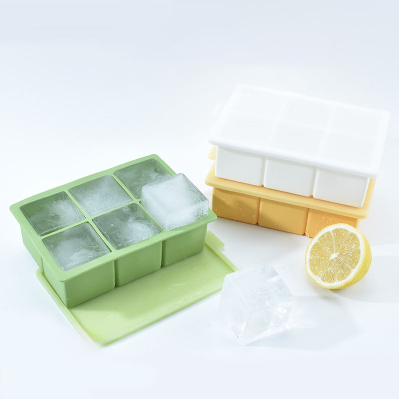 Bandeja grande de cubitos de hielo de silicona LEDUN, molde de cubitos de hielo cuadrado de seis cavidades, bandeja de congelador con tapa adecuada para whisky, comida para bebés, sin BPA