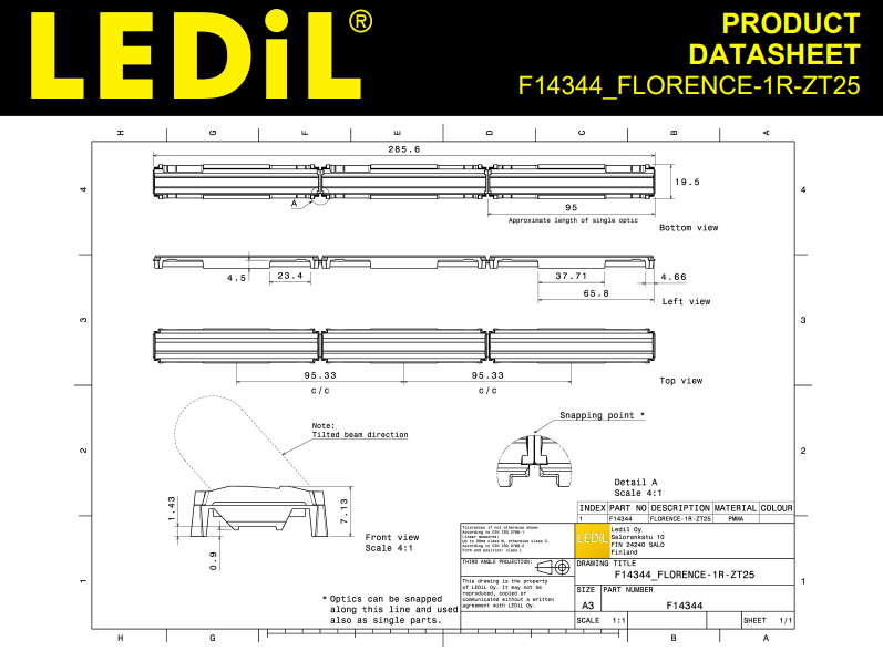 Lentes LED PMMA LEDils F14344_FLORENCE-1R-ZT25, Conjuntos de Lentes Rectangulares, Tira de Lentes Transparente, Adhesivo Asimétrico, Alta Transmitancia