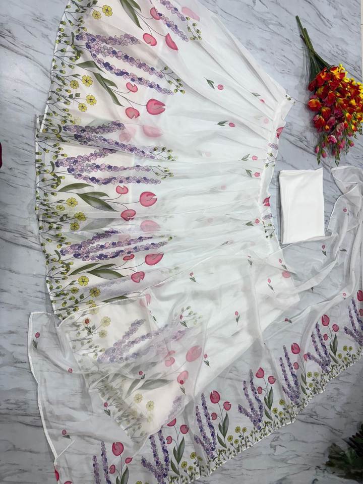Detalles de la tela del Lehenga::Seda Taby Premium con Hermoso Estampado Floral y Cancán Pesado