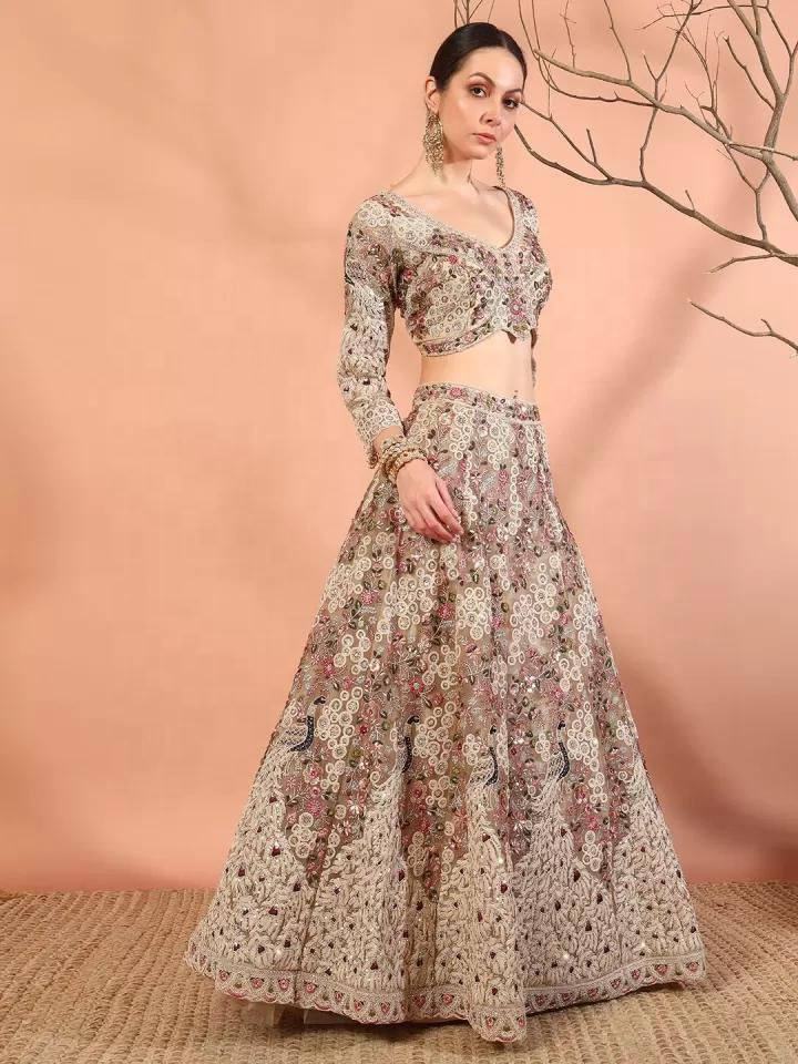 Lehenga Choli de Piel Sintética con Bordado de Mariposas y Lentejuelas, Estilo Cancan, para Fiesta, 4 Metros, Tipo Acampanado