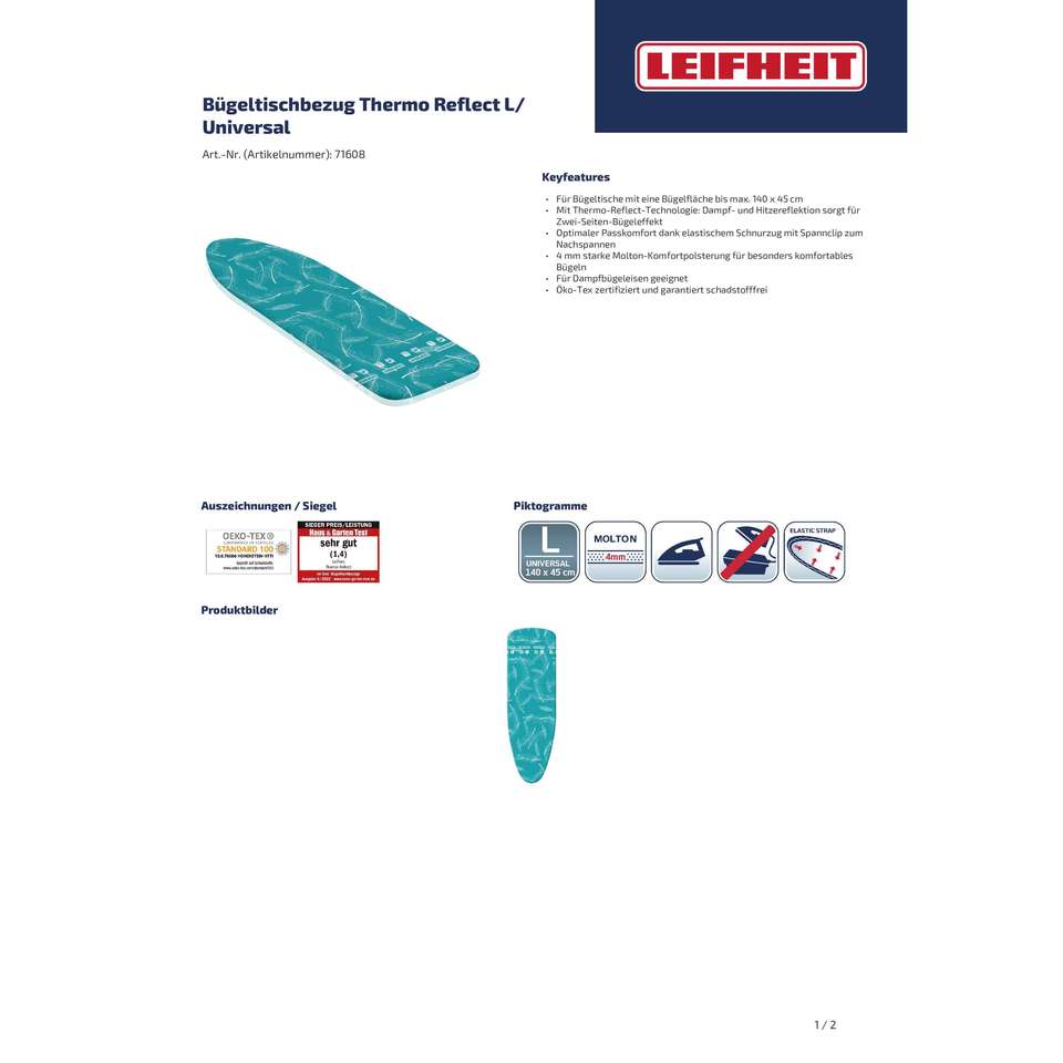 LEIFHEIT Bugeltischbezug Thermo Reflect Universal mit Spannclip 140x45cm