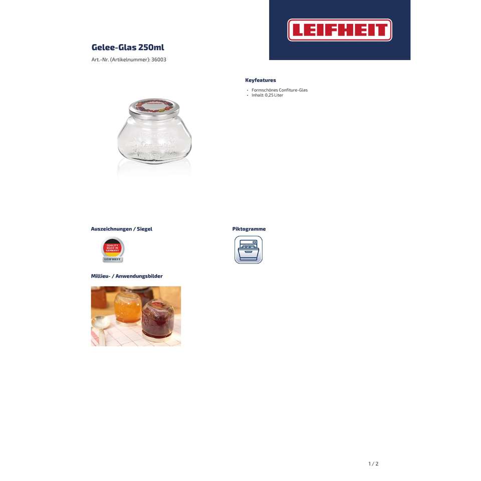 LEIFHEIT Schraubdeckelglas Confiture 0,25 l mit 66mm TO-Deckel