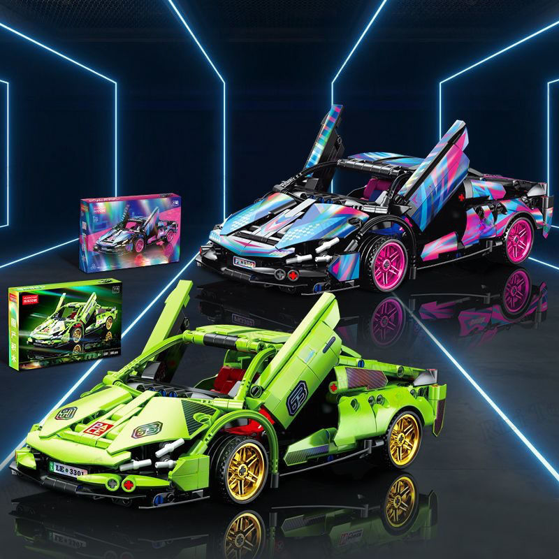LELE BROTHER 9026-9029 Rambo Green Bull, Modelo de Auto Deportivo, Rompecabezas para Niños, Juego de Construcción de Bloques de Ensamblaje, Juguetes de Carreras