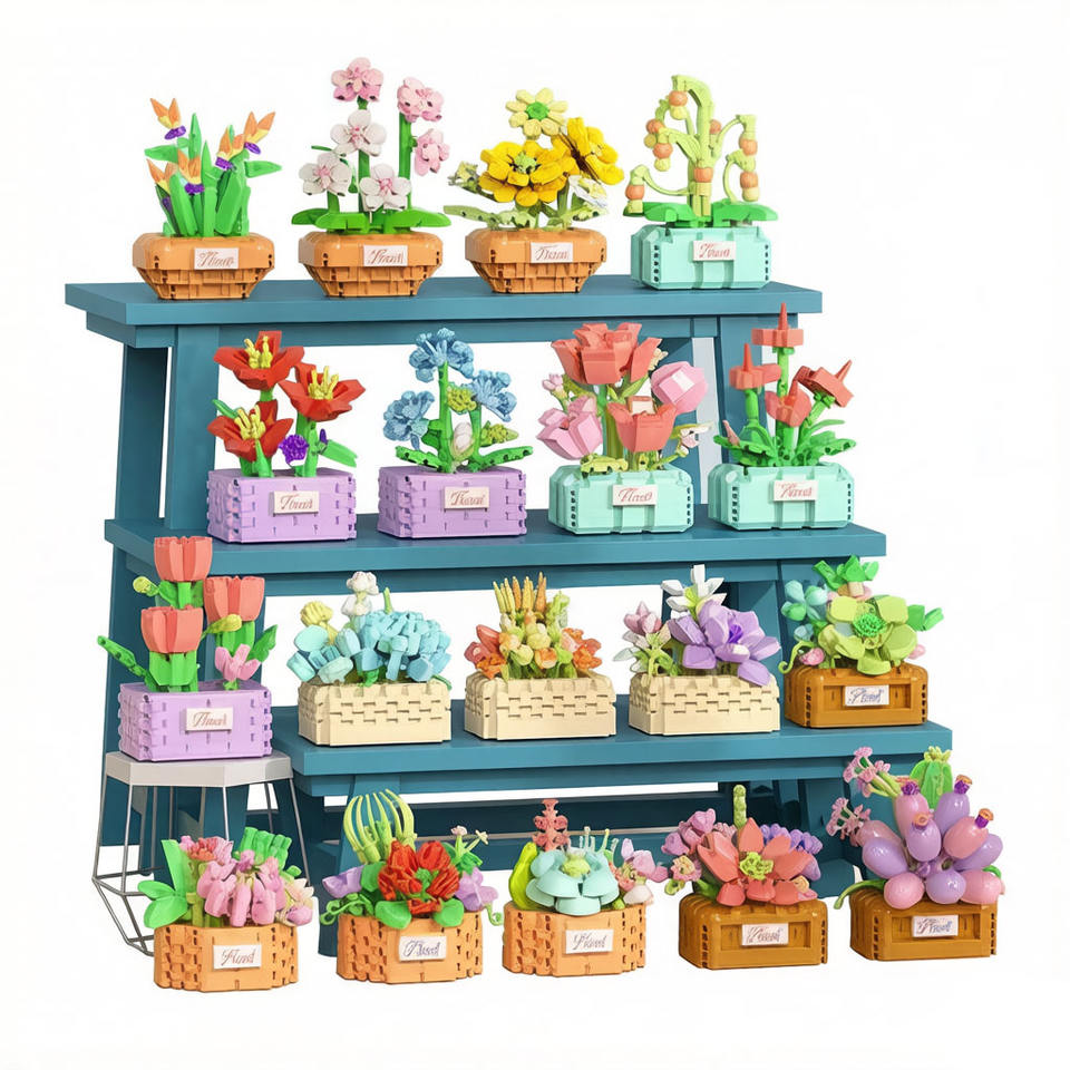 Flower Basket Building Blocks, 18 Styles Mini Flower Model Bricks
