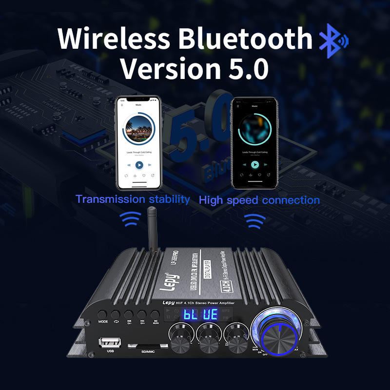 LEPY-Amplificador de cine en casa, LP-269PRO de 4,1 canales, BT 5,0, Coaxial, USB, SD, FM, función de Subwoofer, salida