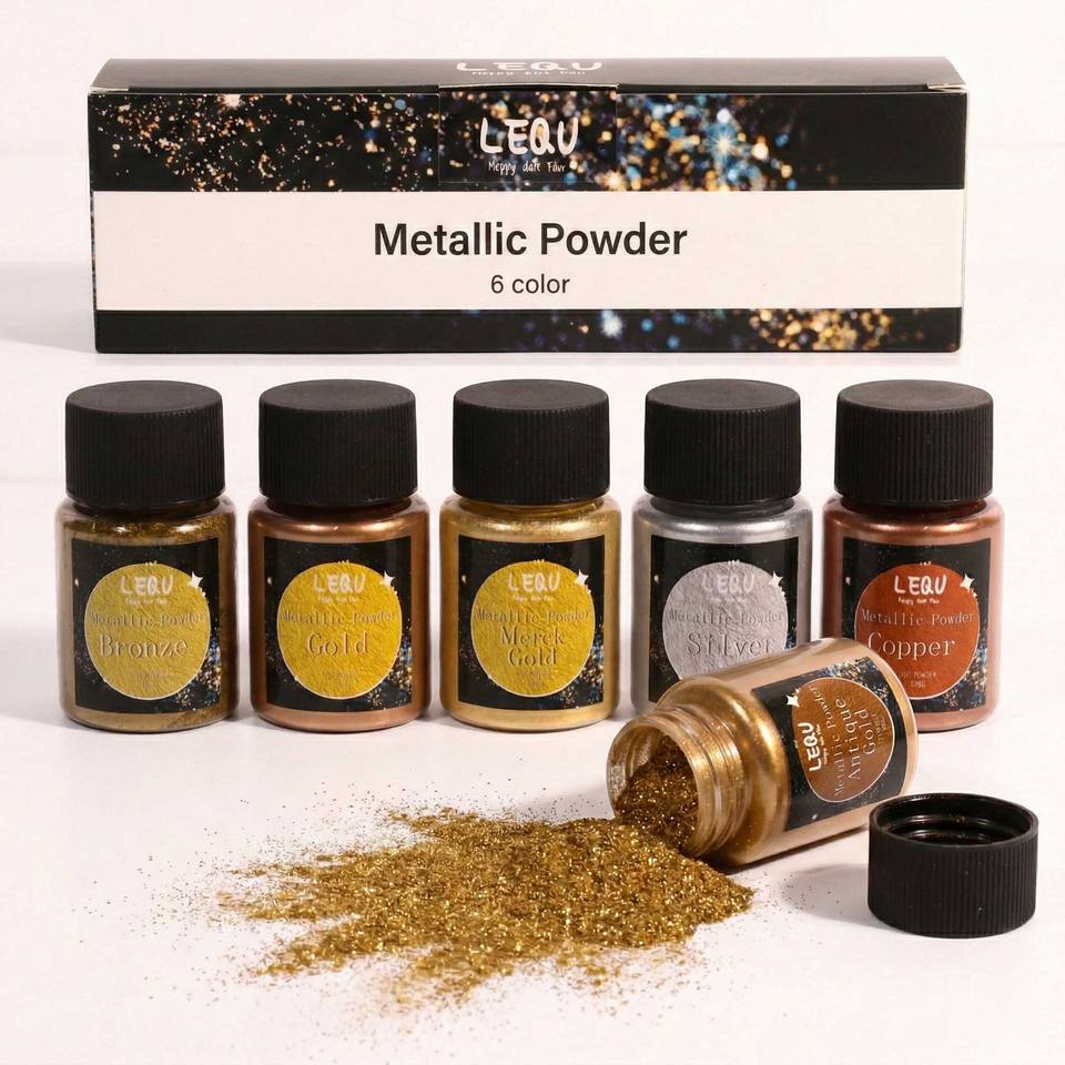 LEQU - Pigmento Metálico Holográfico de 6 Colores, Pintura Artística Hecha a Mano para Manualidades con Resina, Arte de Uñas y Pintura