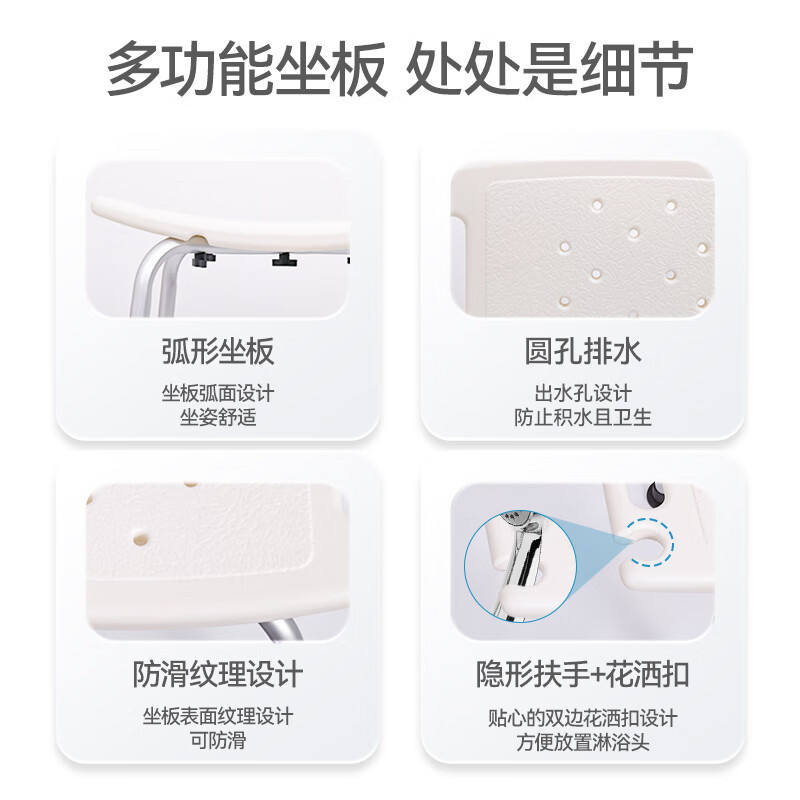Taburete de ducha LFCare, altura ajustable, asiento de baño de plástico blanco para personas mayores, para uso en el inodoro