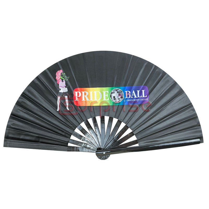 Abanico de mano LGBT Happy Pride Month Abanico de bambú de arco iris gigante con logotipo personalizado Be Yourself Fan Design Técnica pintada