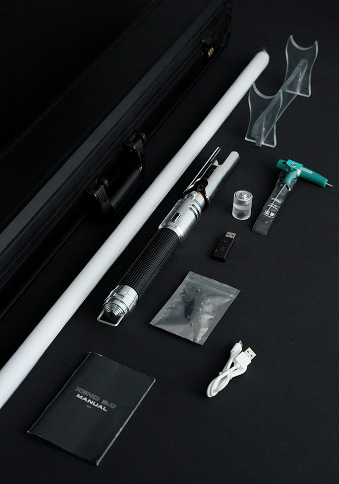 Artículos en el paquete:Empuñadura de sable de luz, hoja, cable de carga USB