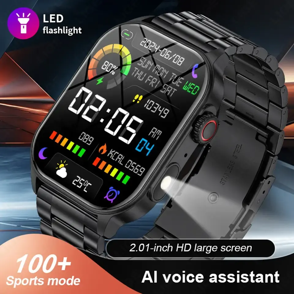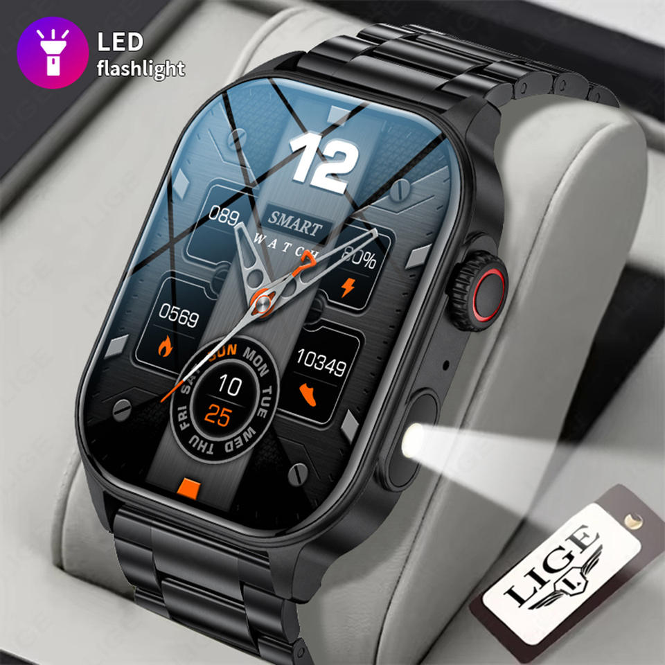 Reloj Inteligente LIGE Nuevo para Hombre con Linterna, Pantalla Grande HD de 2.01'', Voz AI, Llamadas Bluetooth, Reloj Deportivo, Monitor de Salud, Smartwatch para Mujer