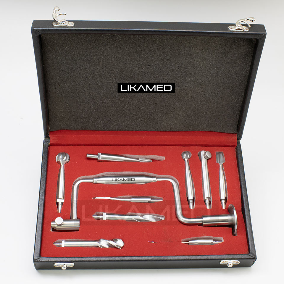 Juego de Brocas Manuales LIKAMED Hudson de 9 Piezas con Caja, Broca Manual Quirúrgica Ortopédica con Brocas