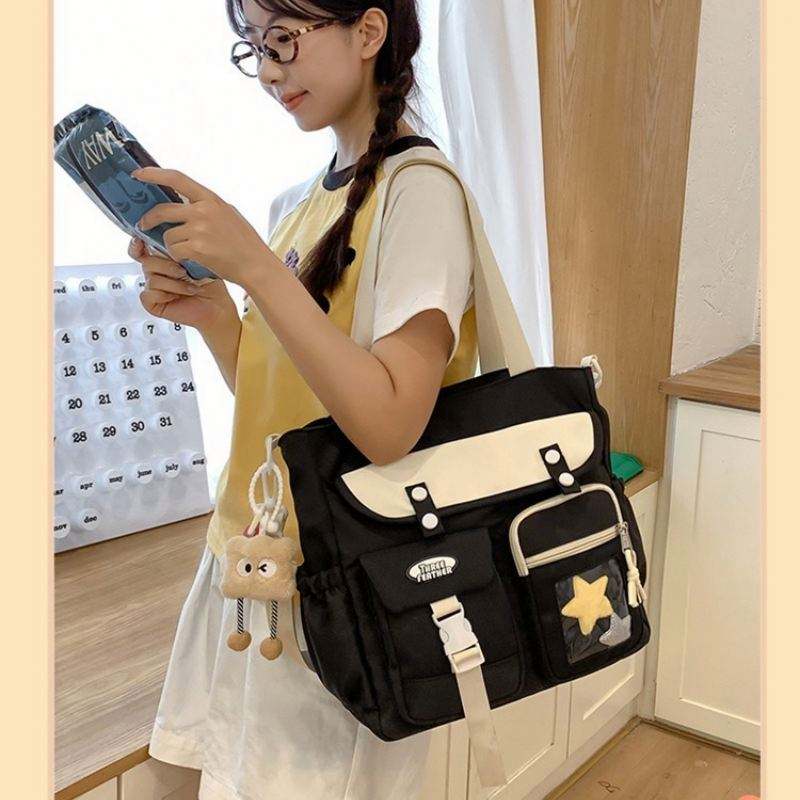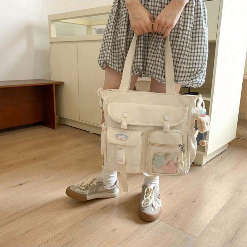 Bolsa de Mano LILA de Gran Capacidad, Color Morado, con Múltiples Bolsillos, Linda y de Alta Calidad, con Logotipo Personalizado para Estudiantes Universitarios y Viajes Diarios
