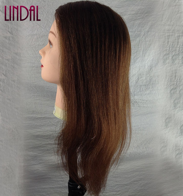 Cabeza de Maniquí LINDAL para Peinado, con Cabello Humano Real de Alta Calidad, para Prácticas de Estilismo