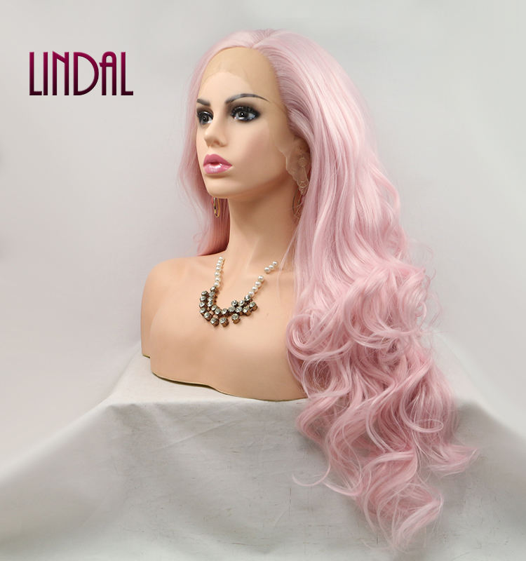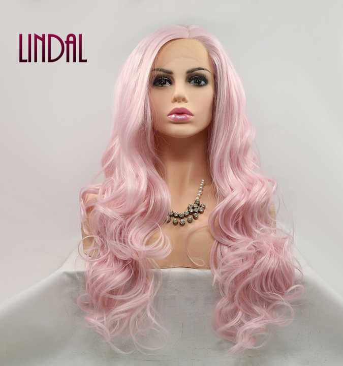 Pelucas de cabello sintético de alta fibra LINDAL, peluca de onda larga de 24 ", cabello sintético Cosplay para mujeres blancas y negras, Color princesa rosa