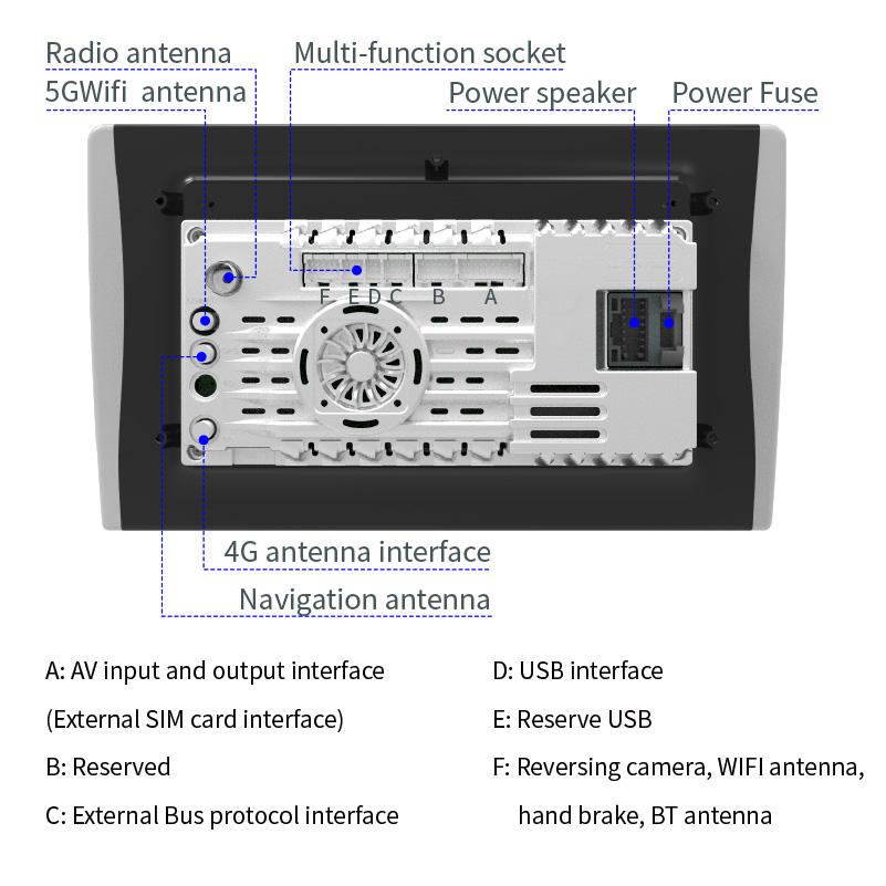 Combinación:Puerto AUX, Invertir la ayuda, Compatible con Bluetooth, Reproductores MP3 / MP4, Sintonizador Radio, HDMI/Out, Cámara de copia de seguridad, DVR, GPS incorporado, Pantalla táctil, DVR Delantero y Trasero, CVBS, Óptico/Coaxial, Cámara de respaldo 360, ministro de asuntos militares 5