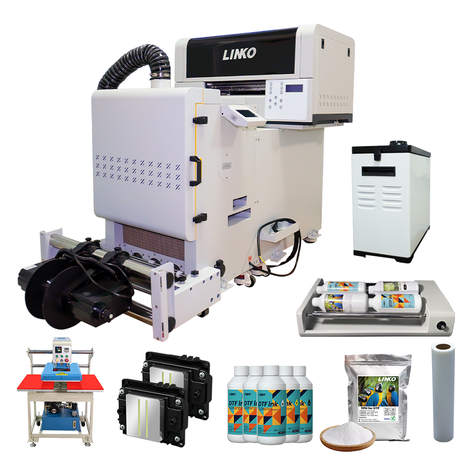 Impresora DTF de escritorio todo en uno personalizada LINKO con cabezales duales I1600 con máquina de impresión de bolsas de papel agitador para camiseta